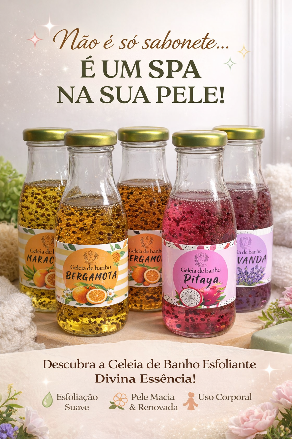 Transforme seu banho em um verdadeiro momento de autocuidado com a nossa Geleia de Banho Esfoliante.